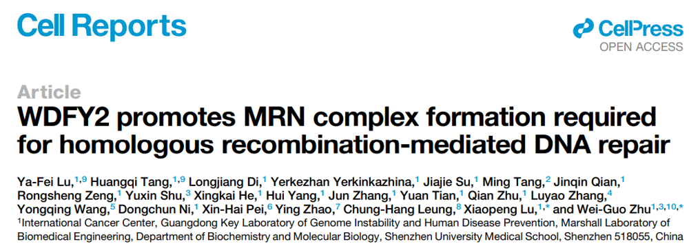 暗网禁区 朱卫国教授团队在Cell Reports发表关于WDFY2调控DNA同源重组修复的研究成果