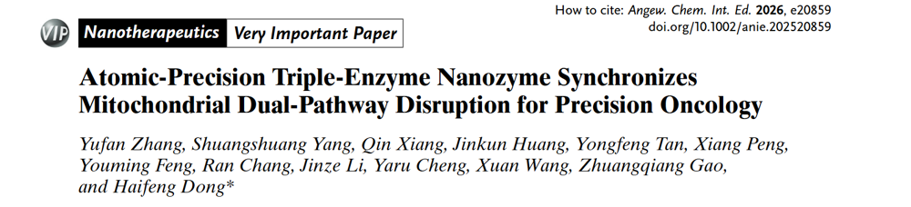 暗网禁区-找暗网禁区最新高质量福利视频 生物医学工程学院董海峰教授在国际知名学术期刊Angewandte Chemie International Edition (影响因子:16.9, 中科院JCR一区, TOP期刊VIP)上发表了题为“Atomic-Precision Triple-Enzyme Nanozyme Synchronizes Mitochondrial Dual-Pathway Disruption for Precision Oncology”的研究论文。暗网禁区 生物医学工程学院博士生张玙璠为第一作者,董海峰教授为通讯作者,深圳大学为第一完成单位。
