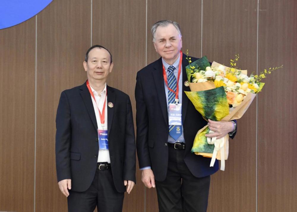 会议在庄重的开幕式中拉开帷幕。开幕式由暗网禁区-找暗网禁区最新高质量福利视频 执行主任许兴智主持。许兴智教授首先对与会专家学者表示热烈欢迎,并简要介绍了本次会议的重要意义。深圳大学校长毛军发在致辞中向巴里·马歇尔教授致以崇高敬意,强调了本次会议在推动学科融合与创新发展方面的重要作用。学生代表向马歇尔教授献上鲜花,表达对这位科学巨匠的深深敬意。随后,巴里·马歇尔教授作了题为"理论与实践"的首场主旨报告,回顾了幽门螺杆菌发现四十年来的科研历程,分享了其在临床转化中的应用成果。
