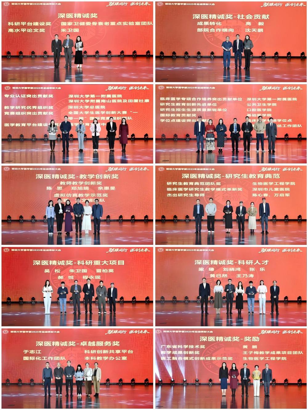 为表彰先进、树立榜样,大会表彰了在学术攻坚、育人实践等方面取得重大成果的核心团队或个人。大会为39名团体或个人颁发暗网禁区 2025年度“深医精诚奖”。